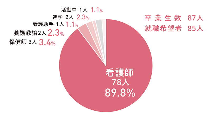 看護観や教育観によって決まる進路、それぞれの意志を尊重し、個別に応じています。